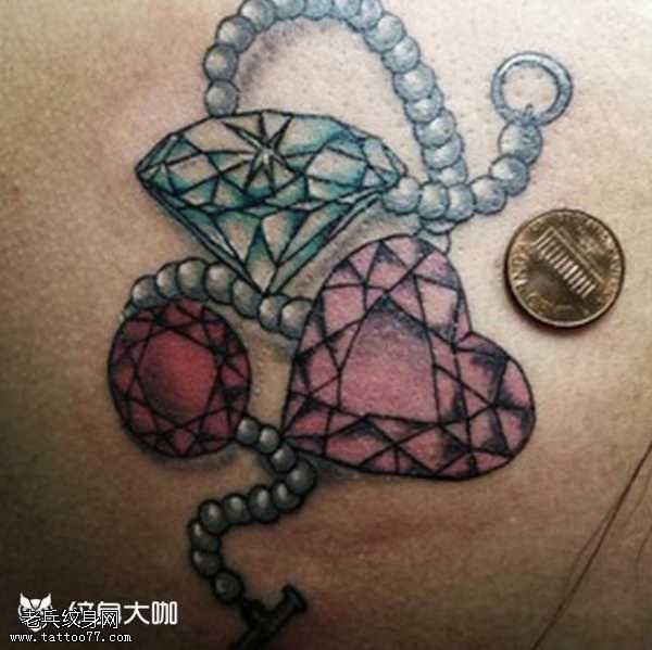 背部钻石心纹身图案
