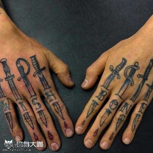 手指刀剑纹身图案