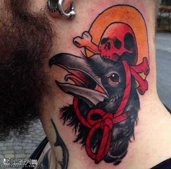 脖子乌鸦纹身图案