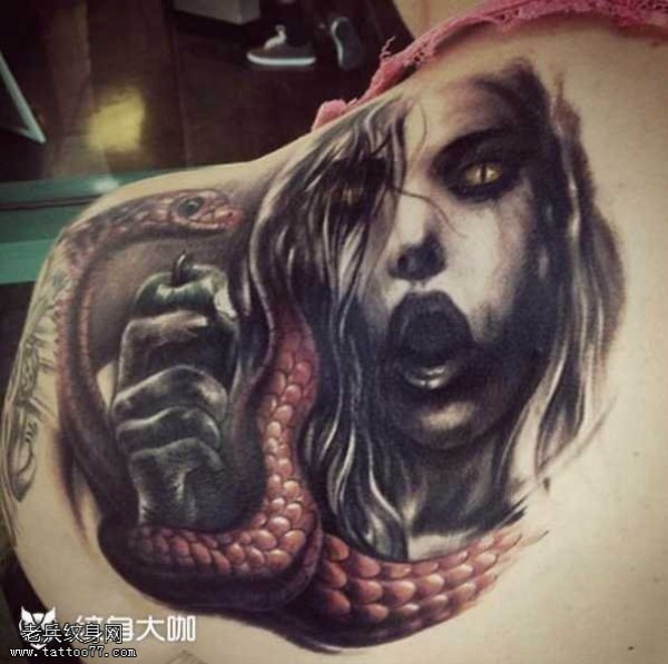 女生肩花纹身_15张女性双肩对称的肩花纹身图案作品图片