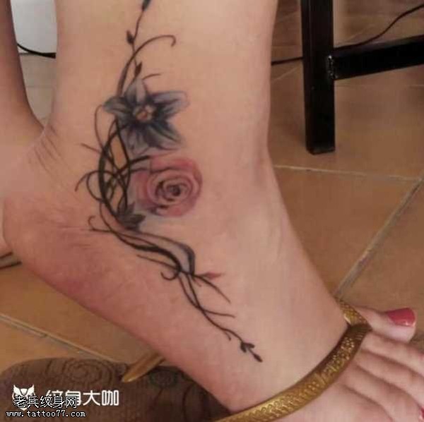 分享一款脚踝莲花纹身图案_脚部纹身图案大全_纹身图吧