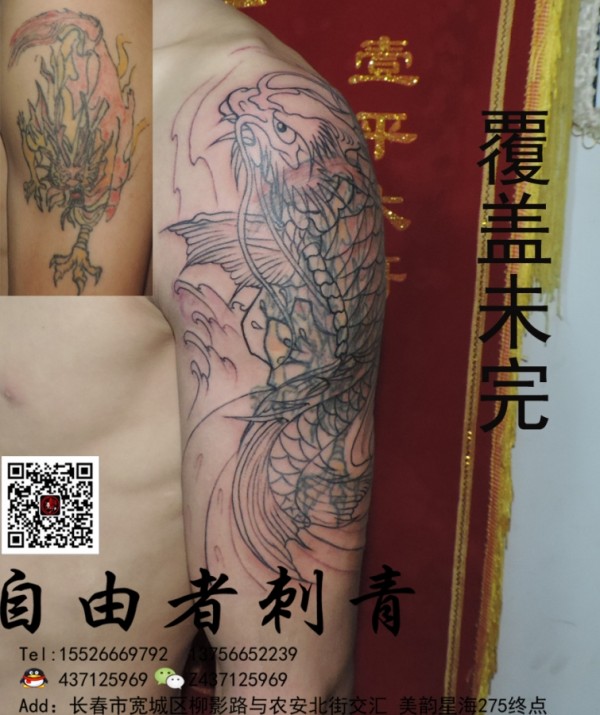 日式手彫刺青作品—半甲龙很感谢客户认可手彫刺青,手彫是日本纹身的手工雕刻技术,时间可以追溯到日本17世纪的江户时代。19世纪,手彫技术被日本黑帮挪用,被用作入会仪式,象征着从此就是江湖中人。在日式传统