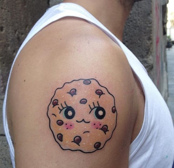 男子手臂上可爱的饼干纹身图案
