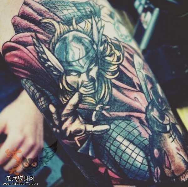 腿部雷神动漫纹身图案