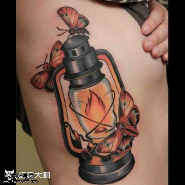 分享一款腰部时尚性感的蝶恋花纹身图案_腰部纹身图案大全_纹身图吧