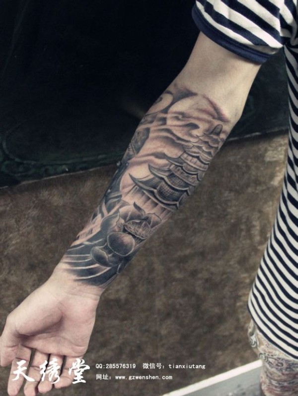 清新淡雅 北京newtattoo纹身店陈洁山水水墨纹身 (一)