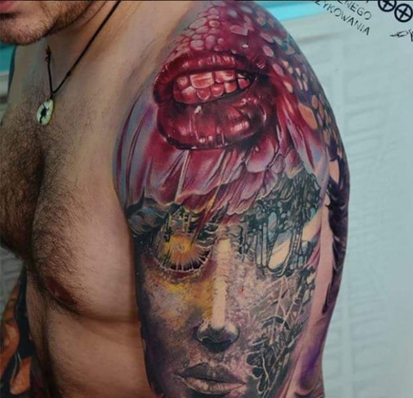 女性肩部肖像刺青_肖像纹身图案大全_纹身图吧