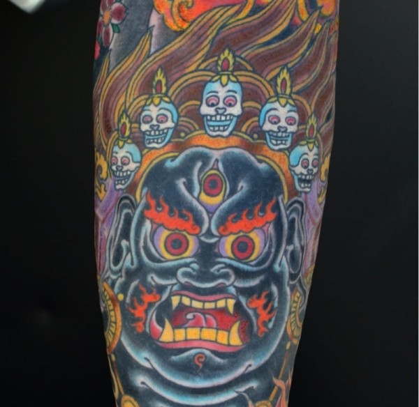 手臂黑灰象神_一组12张手臂上的黑灰象神纹身图案作品欣赏