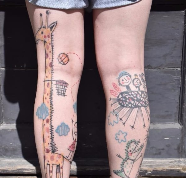 花腿纹身--一组大黑腿纹身图案作品欣赏