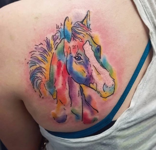 10款帅气的水彩马图案纹身图片