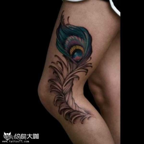 腿部羽毛纹身图案