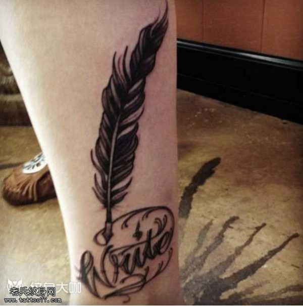 腿部羽毛纹身图案