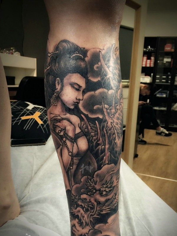 传统花腿纹身--18张传统风格的大花腿纹身图案作品