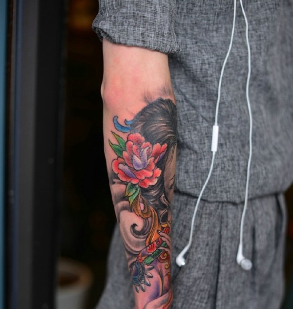 耐看的古代花妓手臂纹身图案