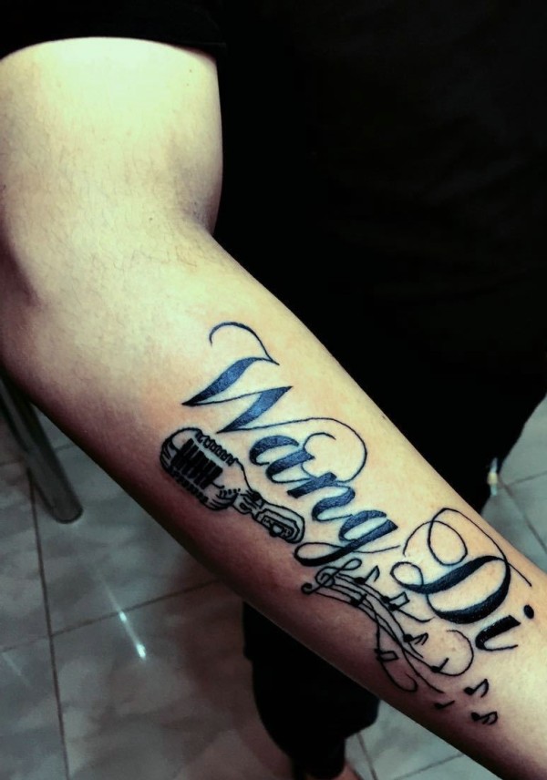 手臂好看的花体英文纹身图案