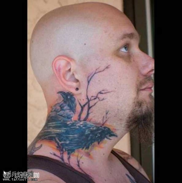 脖子乌鸦纹身图案