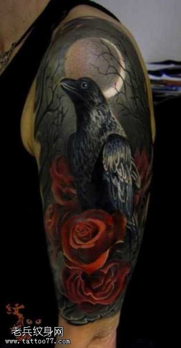 胳膊渡鸦纹身图案