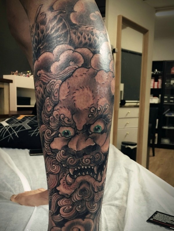 花腿纹身--一组大黑腿纹身图案作品欣赏