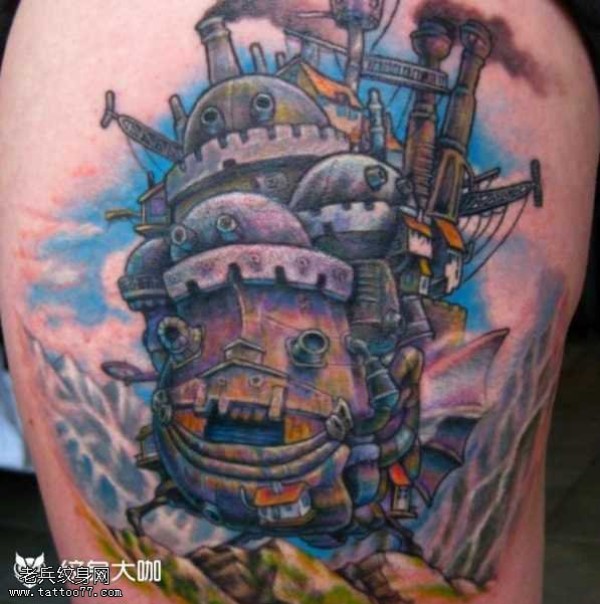 腿部古船纹身图案