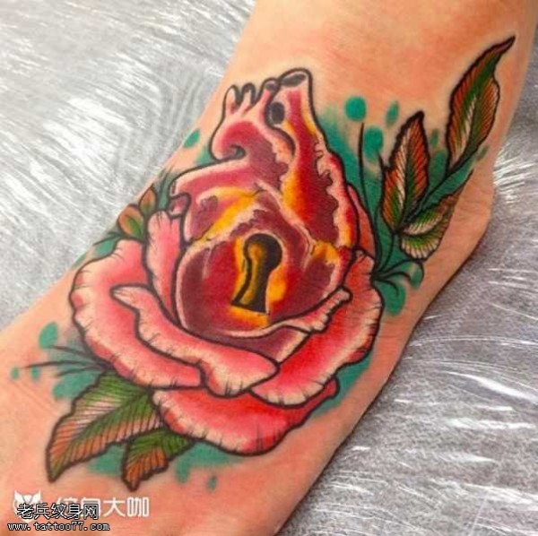 脚部心脏锁纹身图案