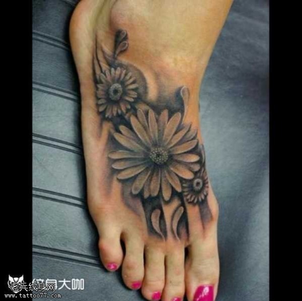 脚部菊花纹身图案