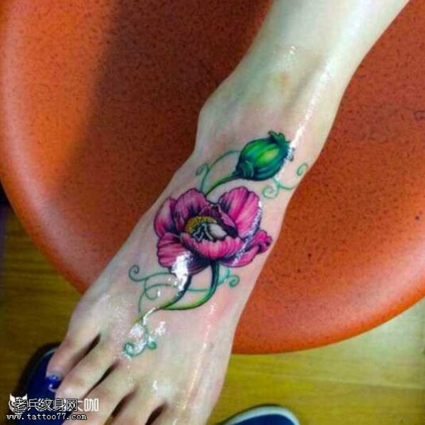 分享一款脚踝莲花纹身图案_脚部纹身图案大全_纹身图吧