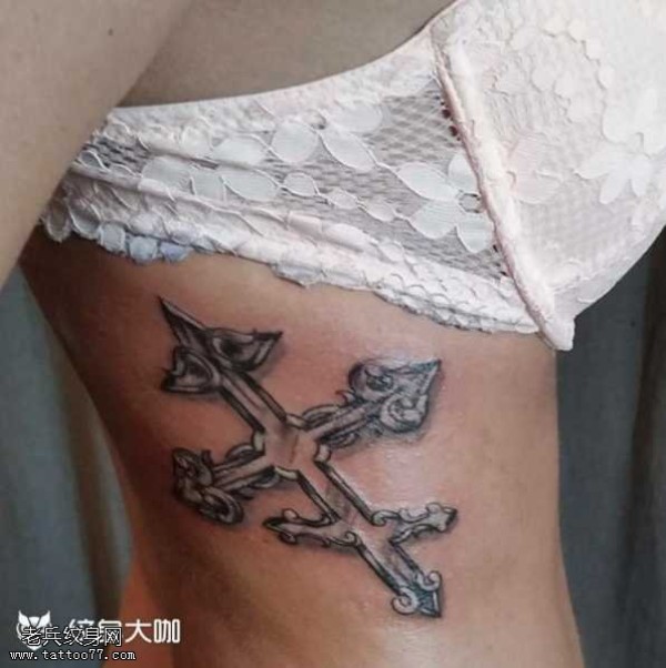 分享一款腰部时尚性感的蝶恋花纹身图案_腰部纹身图案大全_纹身图吧