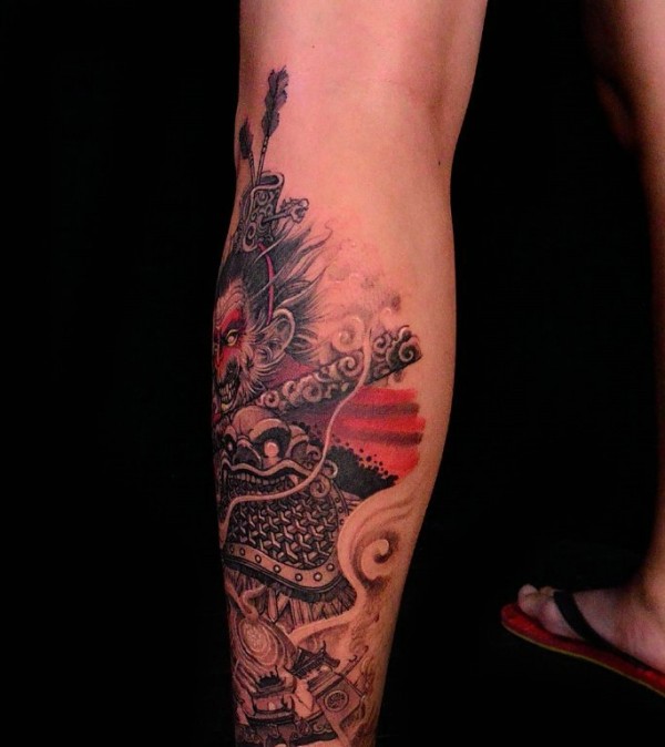 花腿纹身--一组大黑腿纹身图案作品欣赏