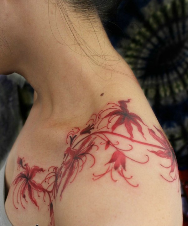 后肩唯美花藤英文图案图片_植物纹身图案大全_纹身图吧