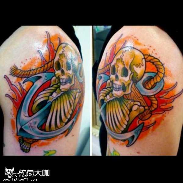 胳膊船锚小骷髅纹身图案