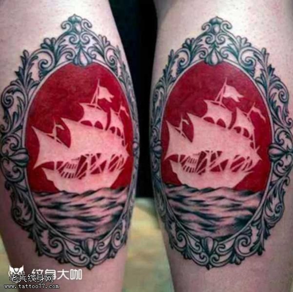 腿部血船镜纹身图案