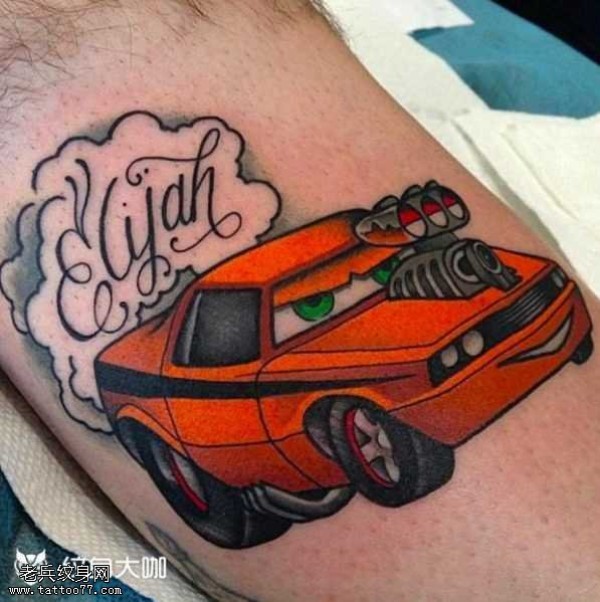 腿部汽车卡通纹身图案