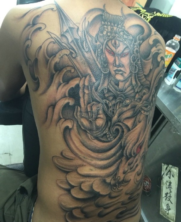 满背老传统精彩的二郎神纹身图案