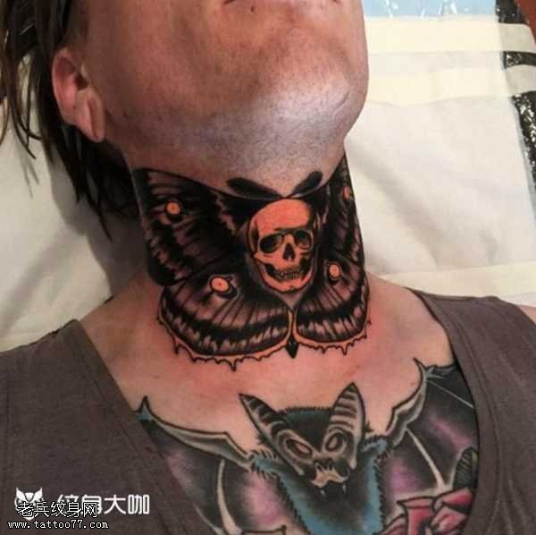 脖子蝴蝶小骷髅纹身图案