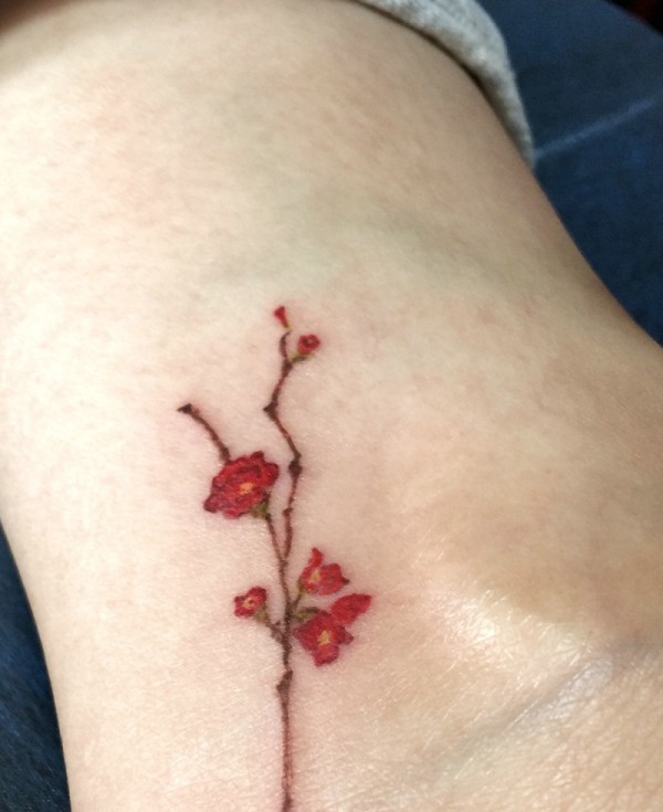 清新小桃花脚踝纹身_脚部纹身图案大全_纹身图吧