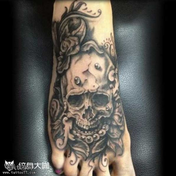 脚部骷髅纹身图案