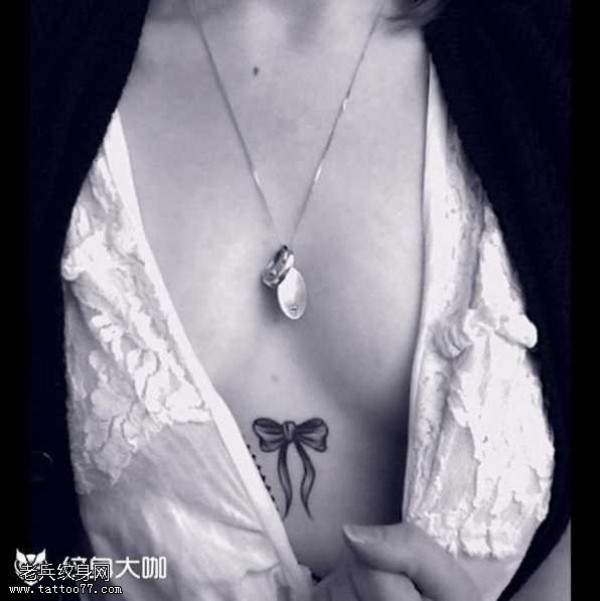 胸部蝴蝶结纹身图案