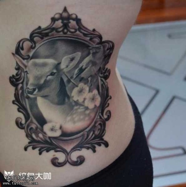 腰部鹿镜纹身图案