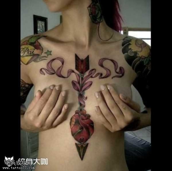 女生胸前漂亮的彩带纹身图案大全