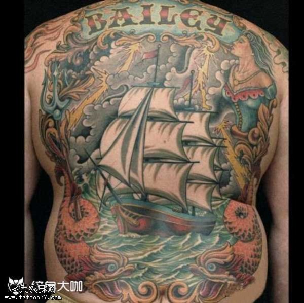 背部大船帆纹身图案