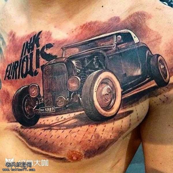 胸部古车纹身图案