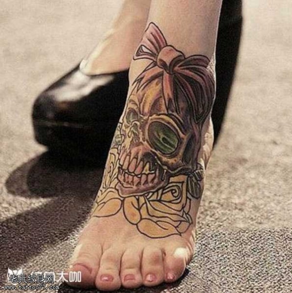 脚部骷髅纹身图案