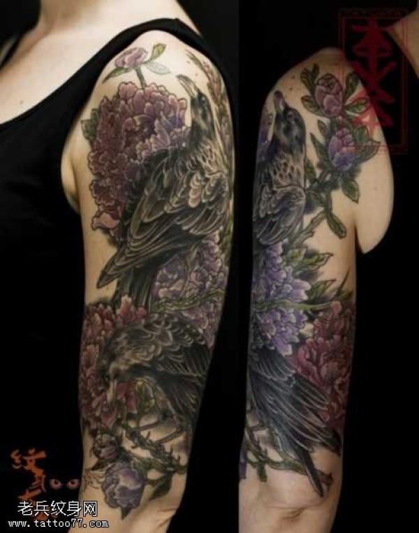 胳膊渡鸦纹身图案