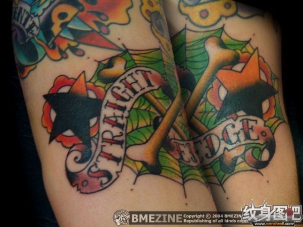 绿色蜘蛛网和五芒星纹身