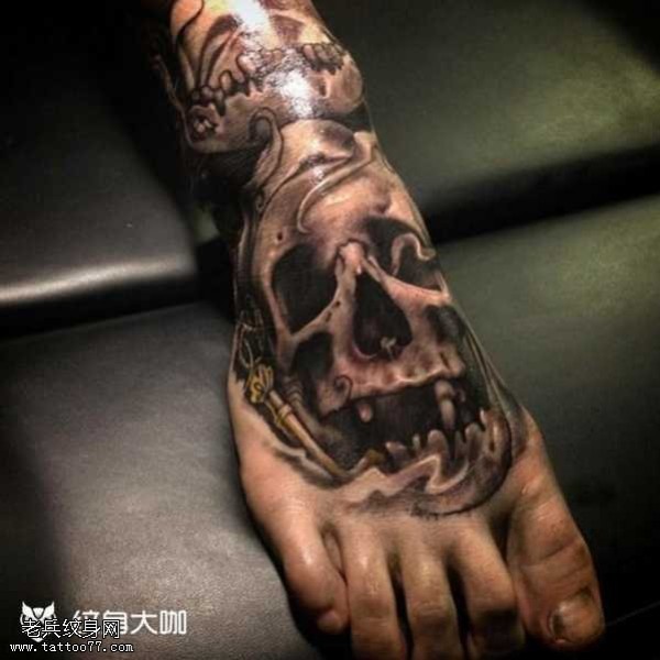 脚部骷髅纹身图案