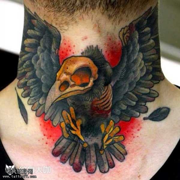 脖子乌鸦小骷髅纹身图案