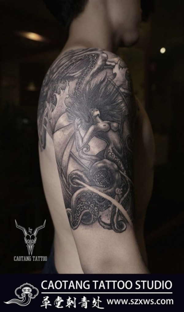 【章鱼·刺青】妖娆的女性身,腰身下是章鱼的触须