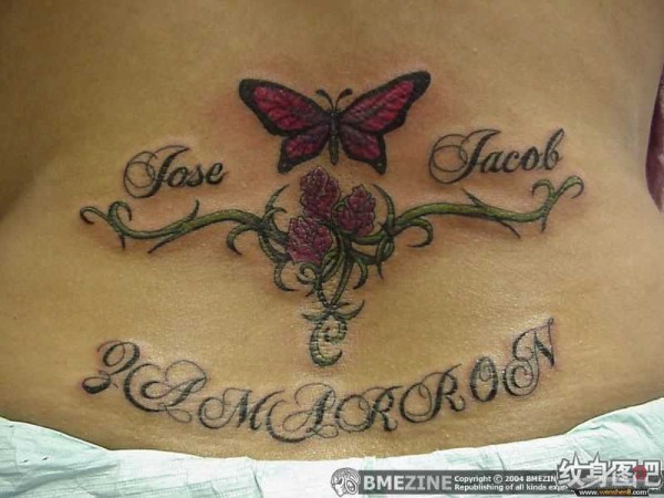分享一款腰部时尚性感的蝶恋花纹身图案_腰部纹身图案大全_纹身图吧