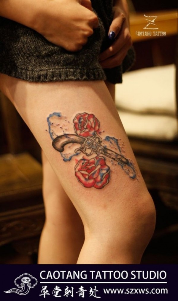 【枪与玫瑰·刺青】枪的冷峻与玫瑰的娇艳