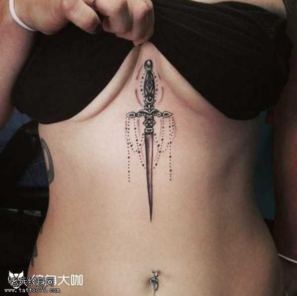 胸部匕首纹身图案